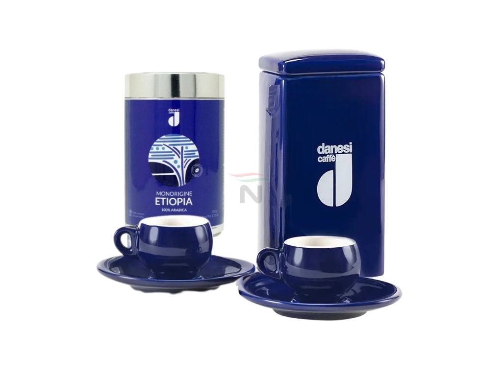 Srdcem tohoto setu je 250g balení zrnkové kávy Danesi Etiopia. Tato jednodruhová 100% Arabika vás okouzlí svou nezaměnitelnou jemností. Čeká vás harmonická souhra květinových tónů, svěžího ovoce a elegantní dochuti, která je pro etiopské kávy tak typická.