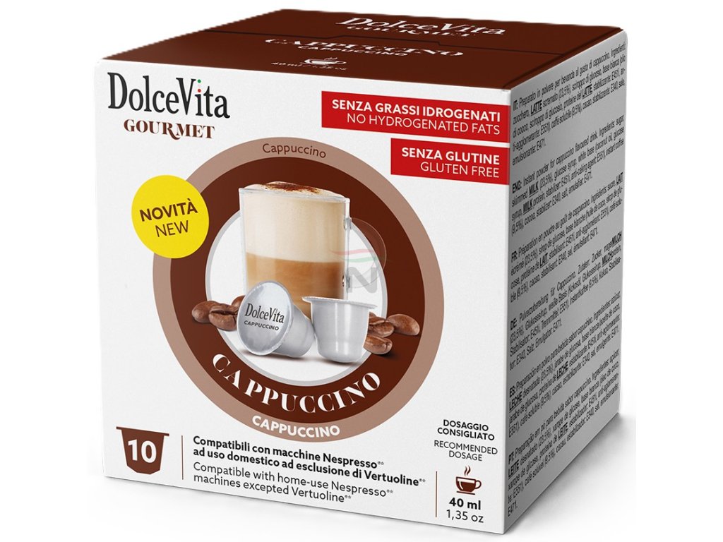 Hledáte způsob, jak si připravit krémové cappuccino bez drahého kávovaru s tryskou na mléko? Instantní směs Dolce Vita v kapslích kompatibilních se systémem Nespresso® je tím pravým řešením. Jediná kapsle obsahuje vše potřebné pro přípravu lahodného nápoje – směs instantní kávy, sušeného mléka a cukru.
