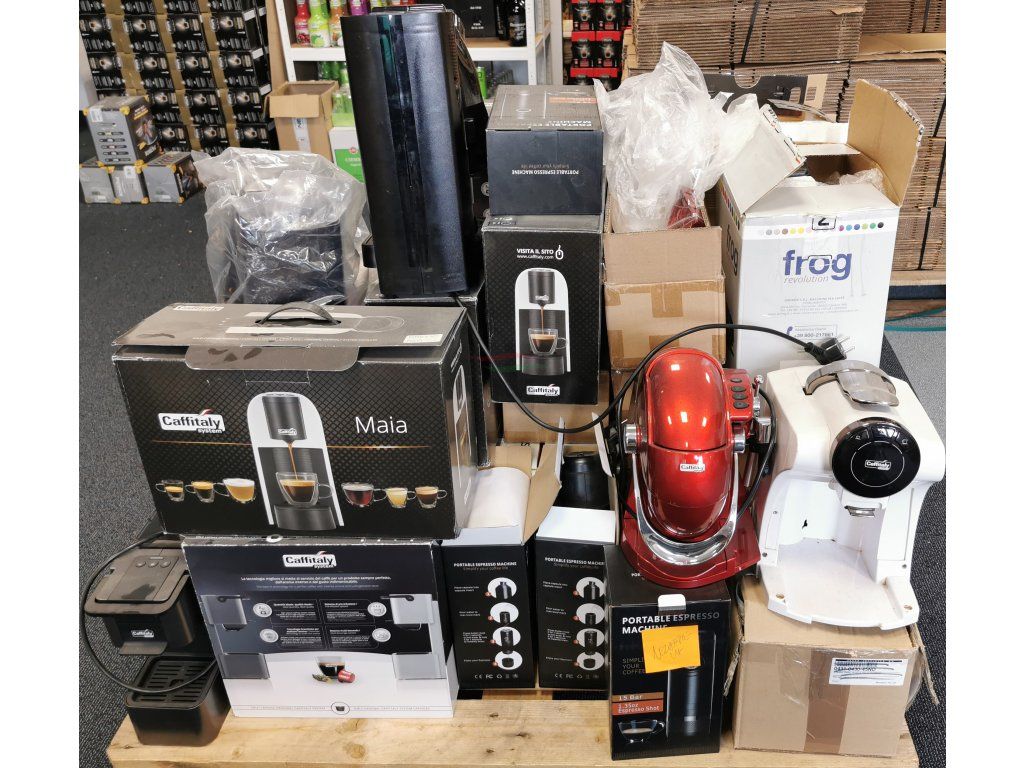 Nabízíme k prodeji paletu obsahující 30 kusů různých kávovarů určených k opravě nebo na náhradní díly.