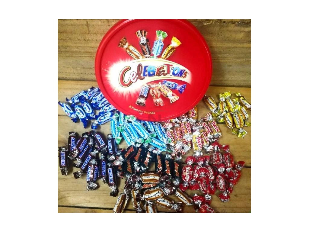 Mars, Galaxy, Galaxy Caramel, Bounty, Snickers, Maltesers, Twix a Milky Way.
