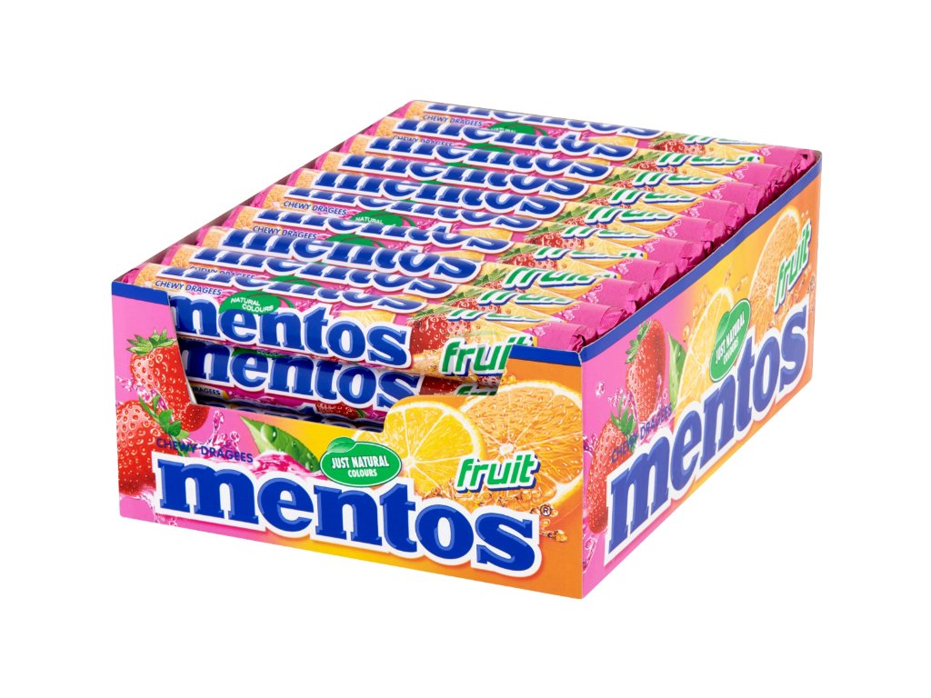 - Mentos fruit jsou oblíbené oválné žvýkací bonbóny.