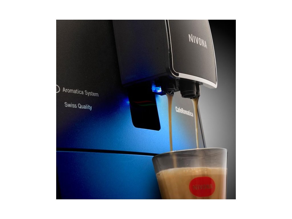 Další a předností tohoto a vyšších modelů značka NIVONA, je automatické čištění nasávací hadičky horkou párou. Funkce, která výrazně usnadňuje údržbu. Není třeba hadičku sundávat a proplachovat. S použitím samostatné násypky pro mletou kávu můžete připravit jeden šálek z různých druhů kávy.