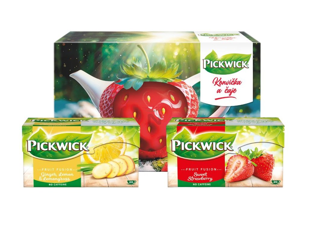 Vychutnejte si chuť čerstvě natrhaných jahod ve stylové konvičce ve tvaru jahody, ručně malované pro Pickwick. Sada obsahuje 2 balení nejoblíbenějších ovocných čajů Pickwick a keramickou konvičku. V této kazetě naleznete čaj Sweet strawberry a Ginger, Lemon & Lemongrass. Balení obsahuje 40 sáčků čaje.