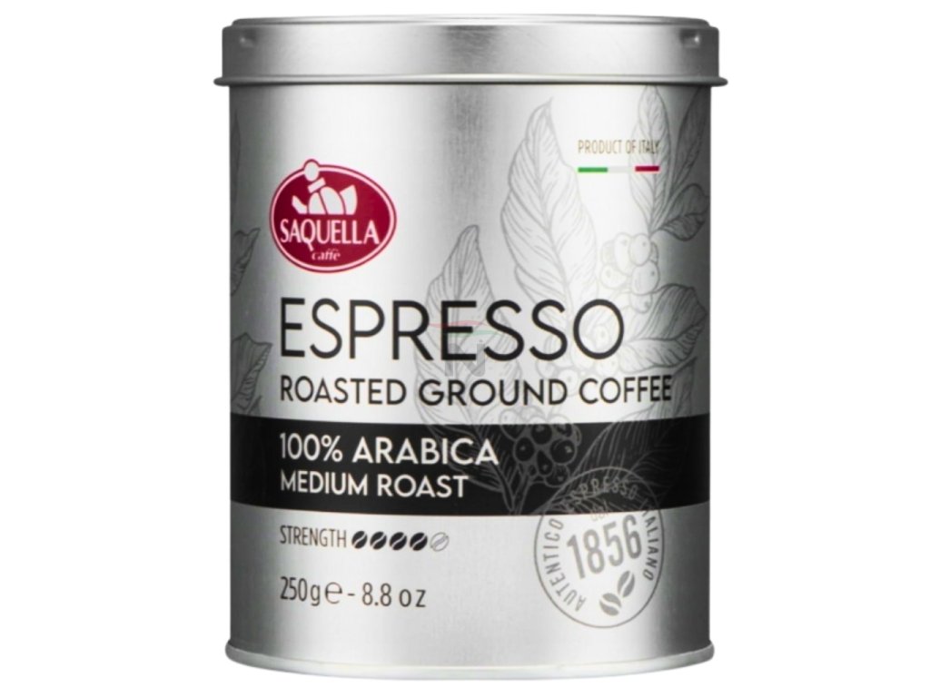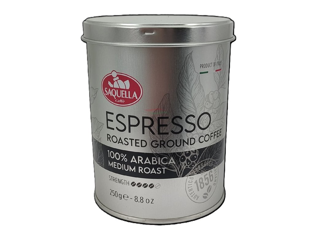 Saquella Espresso 100% Arabica Medium roast mletá káva dóza 250g
