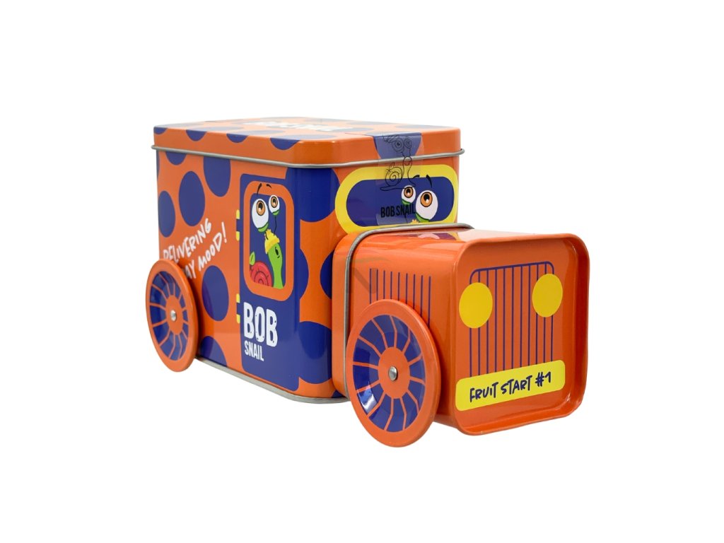Vánoční lokomotiva Šnek BOB ve 9 barevných variantách je naplněna oblíbenými ovocnými dobrotami, hračkou z limitované sběratelské edice, sadou samolepek a originální jízdenkou pro nezapomenutelnou cestu.