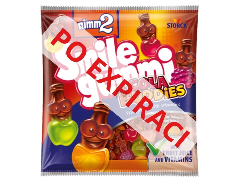 Ovocné želé s vitaminy a kolovou příchutí. PO EXPIRACI