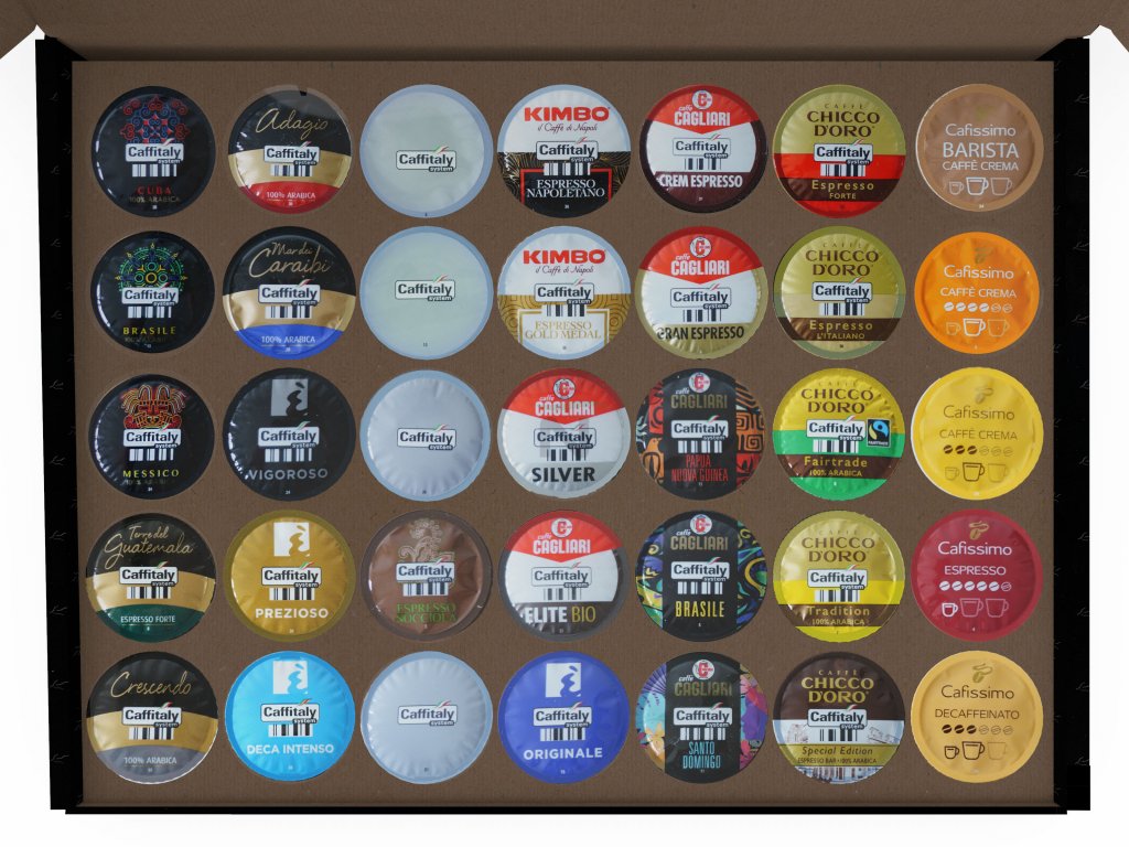 Vyzkoušejte náš testovací box kapslí do Tchibo Cafissimo® a Caffitaly, který obsahuje kapsle Tchibo Caffissimo, Caffitaly Limitovane Edice, Kimbo, Cagliari, Chicco D ORO, Foodness a další. Vy si tak můžete vybrat ty, které vám budou chutnat nejvíce a příště objednat celé balení.