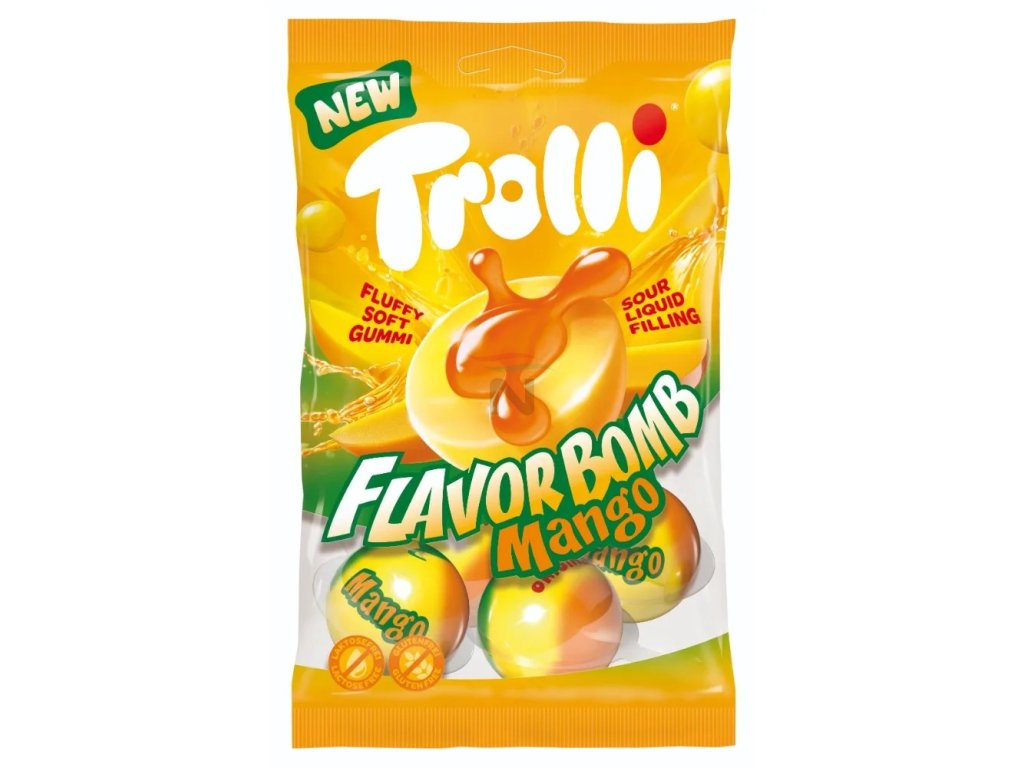 Složení: glukózový sirup, cukr, dextróza, želatina,2% mangová šťáva ze zahuštěného manga, kyselina citrónová, želírující látka: pektiny, aromata, potraviny s barvicími vlastnostmi (mrkev, dýně, batáty, kurkumin), barvivo: kurkumin, glazurující látka: vosk je bílý a žlutý.